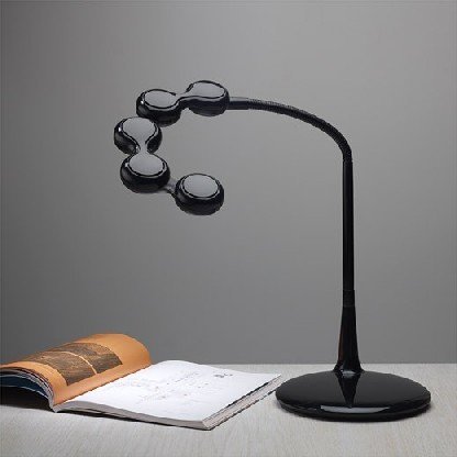LED Desk Lamp with 60 Superbright White LED Bulbs. Flexible Spring Tube Armature which is sleek and fully adjustable. Bend and angle the light in any position. Four moveable lamp modules easy to adjust. Three step brightness level high, medium & low with on off touch sensor. Housing is ABS high impact plastic with weighted base.