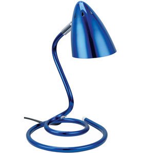 Finish:Blue, Light Bulb:(1)60w G16 Med F Incand A fun swirled body brings this lamp to life. Adjustable head provides excellent lighting. Perfect for reading.